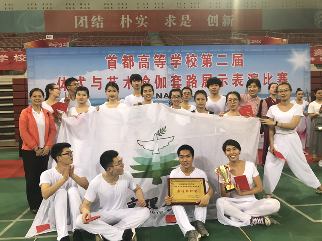 我校瑜伽队在体育部王娟、蔡晓竹老师带领下,克服跨校区合练、学业考试等重重困难,经历了2个月刻苦训练,终将辛勤的汗水结成丰硕的果实,取得混双一等奖、男子单人二等奖、女子双人二等奖、男子双人二等奖、女子单人三等奖、团体三等奖、最佳组织奖的优秀成绩。参加本次大赛不仅是对我校瑜伽课堂教学和课外群体指导工作成绩的一次展示与肯定,更为加速瑜伽运动在我校的普及与推广、规范瑜伽教学内容与方法发挥重要作用。