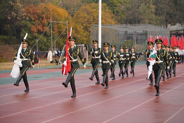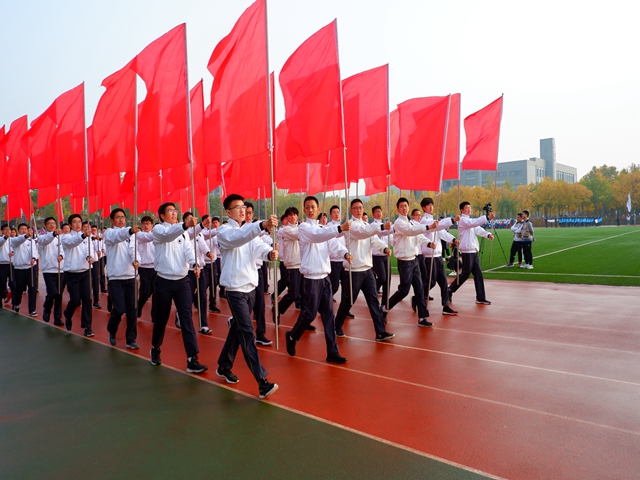 伴着雄壮的进行曲,国旗队、红旗队、各书院和国际教育学院方队依次入场。嘹亮的口号、铿锵的步伐,踏出他们的坚定与自信;动感的现代舞、热情的啦啦操,洋溢着他们的青春与朝气;融汇书院特色文化的方阵入场,展现了新时代北理人爱国、奋斗、追梦的精神风貌。