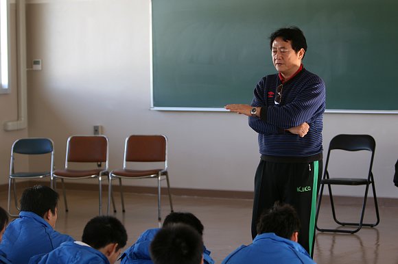 在争夺第三名的比赛开始之前,我校足球队总教练金志扬教授总结了上一场比赛的得失,并就本场比赛的对手韩国汉阳大学足球队的特点进行了认真的分析,金志扬教授主张球队要想取得更好的成绩,想在明年的国内甲级比赛中站稳脚跟,必须进行创新与改革。韩国汉阳大学也好,朝鲜大学也好,其打法与特点都与日本驹泽大学相似,这次比赛大家要有充分的心理准备,要以快治快,以拼治拼,看看自己的比赛节奏和拼抢技术能否与对方看齐,并争取抓住场上的每一次机会,力争先发制人,尽量让对方不适应我们调整后的新节奏,当然这种尝试打法需要大家统一思想,在场上尽自己最大的努力去跑去拼去抢,不能有丝毫的犹豫,无论最后结果如何,只要大家尽力了,这样我们就不仅能从对手身上学到足球发展新的理念,而且可以把它与自己的技战术结合起来。