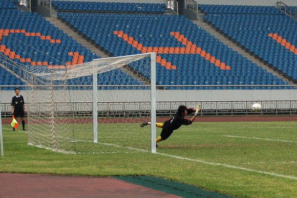 无奈球速太快,角度太刁,守门员也只好望球兴叹,鞭长莫及~~~