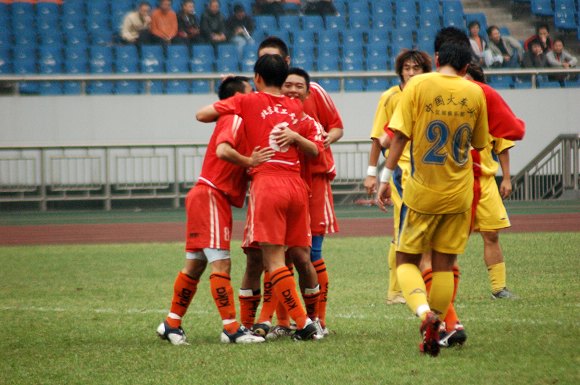 相对于天津火车头现场球迷几乎零的纪录,我校足球队组织了百余名球迷现场观战,热烈的助威声几乎使队员把今天的主场挪到了北京成品人和一品二品的区别东操场。