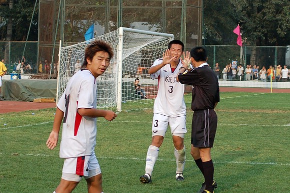 8月26日下午4点,我校足球队迎来了2006全国职业足球乙级联赛下半程的第二场比赛,在主场迎战目前排名北方赛区第四的哈药毅腾队,最终对手在裁判的“关照”下与我方以0:0战平,双方各取1分。哈药毅腾队在今年乙级联赛开赛之前就是呼声极高的所谓“冲甲”热门队伍,但其在比赛中的各种表现却不时让人大跌眼镜。在上半程我校足球队客场与其的比赛中,该队队员的踢法就已经让人不敢恭维(点击进入相关链接),这次比赛部分场面更是令人匪夷所思,看来中国足球无论是球员还是裁判都离足球大国的地位还有相当远的路程。