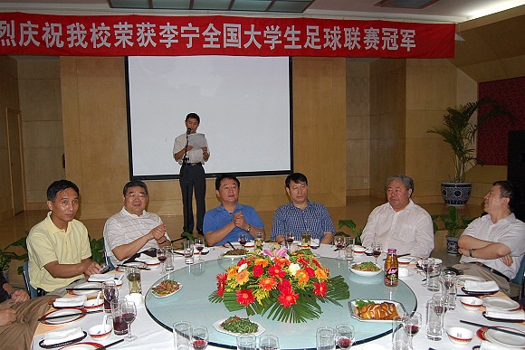 我校足球队全体队员、教练员、相关部门领导参加了庆功会。
