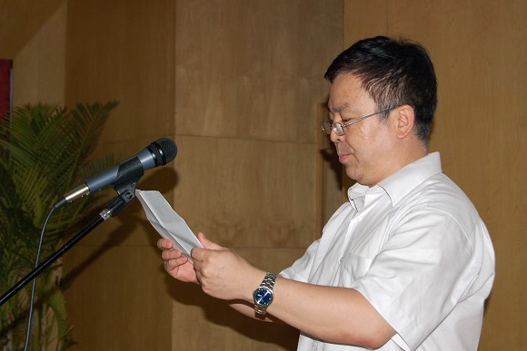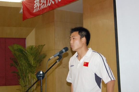 足球队总教练金志扬教授发表感言,对学校领导重视表示感谢,对中国足协、北京市教委的大力支持表示感谢。