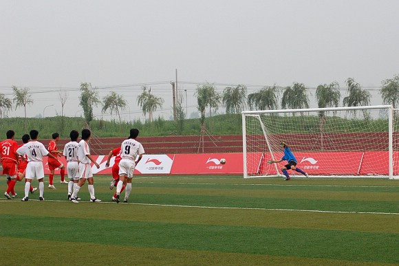 紧张的比赛一直进行到下半场第40分钟,我方场上队长8号袁微带球由底线附近突入禁区,在过人时被对方队员恶意绊倒,我方获得一个珍贵的点球,由6号队员于飞主罚。