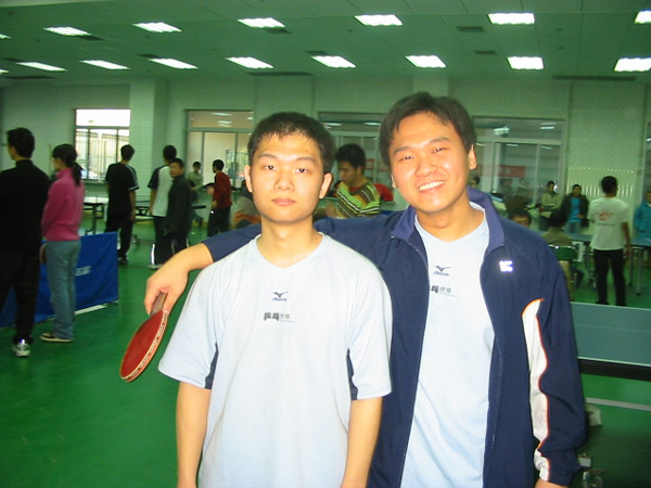 印度尼西亚留学生许天才(右)获得男子单打第四名,并和韩国留学生组成的男双获得了第四名的好成绩。