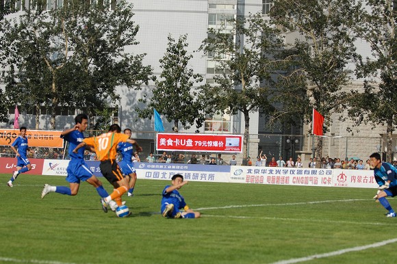 进球后的爱国者大学生队在主场球迷“理工必胜、理工爱国、理工进一个”的助威声中,加快进攻速度,多次在对方后场制造险情。