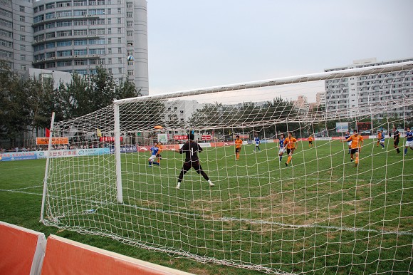 比赛伊始,双方都在进攻中投入了大量兵力,比赛节奏很快,在三分钟内双方各有一次突入对方禁区,但没形成很大威胁。第6分钟,七斗星首先威胁对方球门,30号罗兰德左路突入禁区射门,被门将挡出。爱国者随后给予还击,24号杨阳禁区前左侧吊门,球又平又快,门将飞身将球托出横梁。