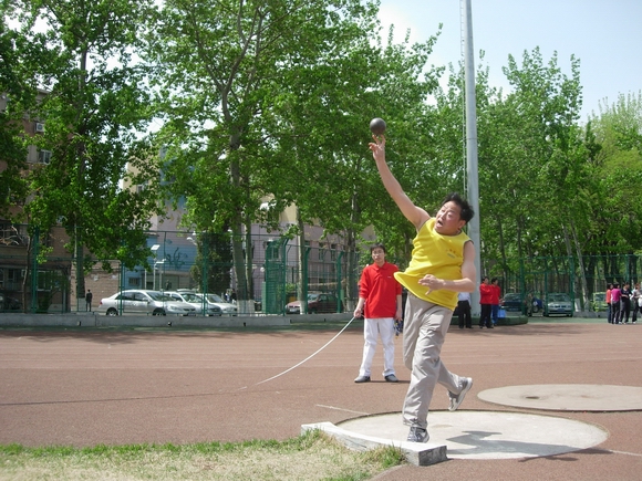 赛场上佳音不断,党跃臣博士获得男子中年组铅球的第2名。