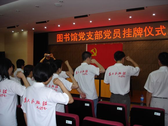 为了迎接建党86周年,保持共产党员的先进性,根据校党委在全校开展“党群零距离”主题活动的要求和直属单位党委的具体部署,图书馆党支部党员挂牌仪式暨重温入党誓词活动于6月15日上午在图书馆报告厅隆重举行。校党委副书记赵平、直属单位党委书记王悦音出席了仪式。