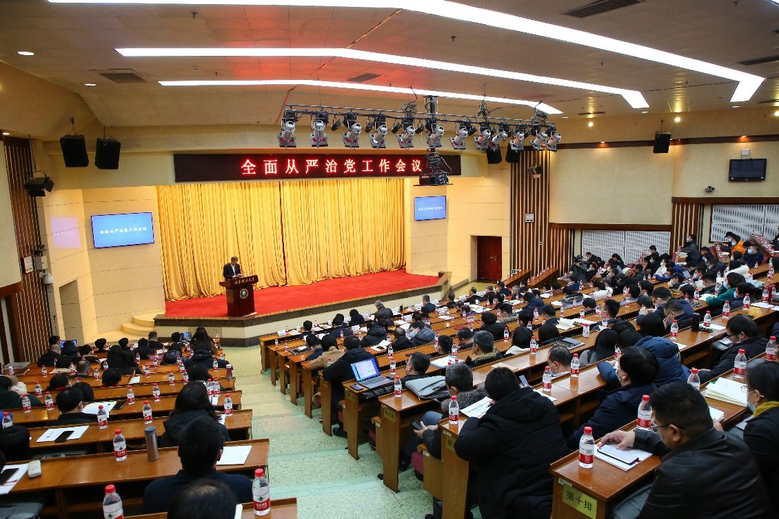 党委书记赵长禄代表学校党委作工作报告,系统总结2021年全面从严治党工作,深入分析全面从严治党和党风廉政建设面临的形势任务和要求,安排部署了学校2022年全面从严治党工作。