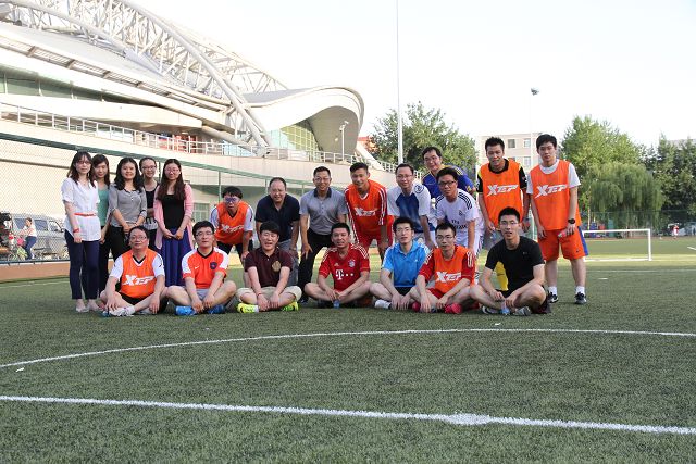 开场后,双方队员们你争我抢,积极奔跑,认认真真的完成传球、抢断、停球、过人、射门等每一个技术动作。经过十几分钟的磨合,学校办公室队员们更是逐渐形成了默契,不断打出精彩的传接配合,赢得了拉拉队的欢呼和称赞。赛场上,双方本着“友谊第一,比赛第二”的宗旨,队员们的动作文明礼貌,比赛氛围更是和谐、欢快。大家挥汗如雨、顽强拼搏,经过一个多小时的激烈比赛,最终双方以5:5握手言和,比赛圆满结束。