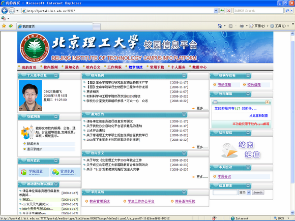 13. 站内直达:在平台首页提供书记信箱、校长信箱、管理机构、学院设置、本周会议等栏目的链接,可以直接获取常用服务信息或直接链接到校内各部门网站首页;