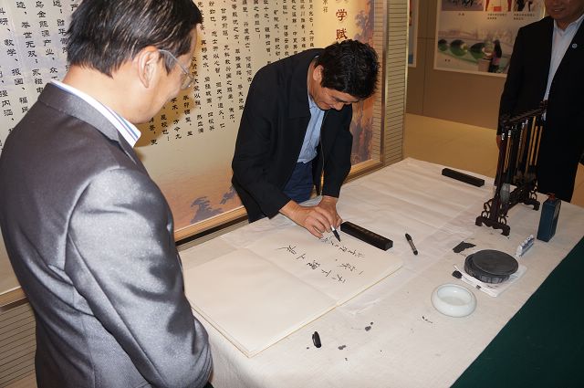 参观河南成品人和一品二品的区别校史馆,赵显利副校长题词:“天下理工是一家”