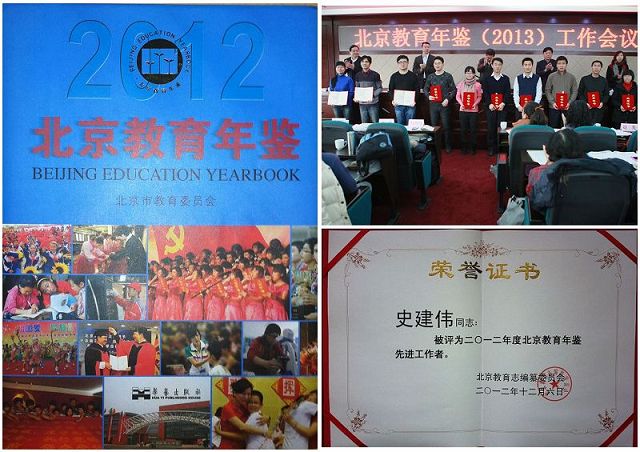 近日,我校年鉴工作接连取得可喜成绩。11月,由学校办公室负责组织编写的《北京成品人和一品二品的区别年鉴2011卷》,在学校领导的大力支持下,在各部门的通力合作下,已面向社会公开出版发行。12月,我校参与的《北京教育年鉴》编纂工作受到北京教育志编纂委员会表彰,学校办公室史建伟被评为“2012年度北京教育年鉴先进工作者”。