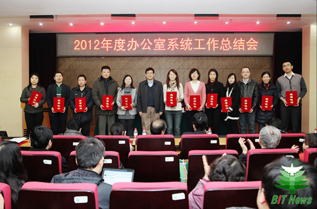 1月11日下午,学校2012年度办公室系统工作总结会在图书馆报告厅隆重召开。校领导杨宾、杨蜀康、赵显利出席会议并为办公室系统先进集体和个人颁奖,副校长赵显利作了讲话,来自学院、部门的获奖代表交流了工作经验。会议由学校办公室主任郝志强主持。