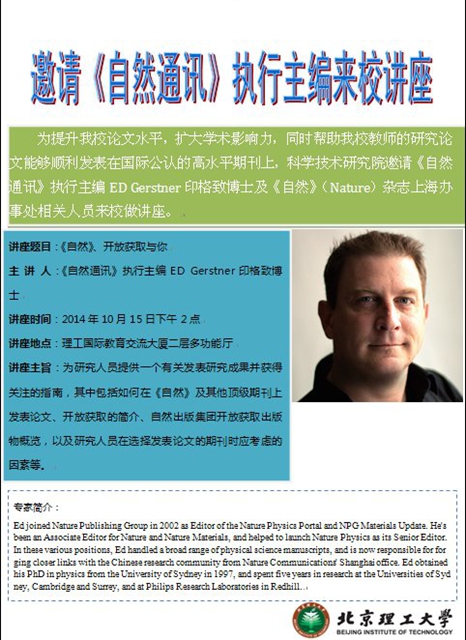 关于邀请《自然通讯》执行主编来校讲座的通知