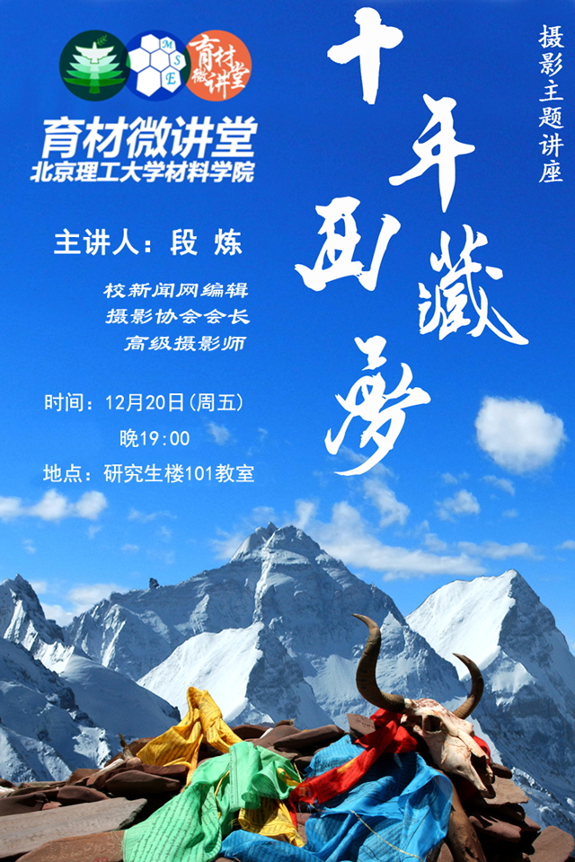 为丰富理工学子的课余生活,使广大师生能近距离感受西藏地区的人文风光。材料学院“育材微讲堂”特邀党委宣传部段炼老师,用自己的镜头语言与广大学生交流“十年西藏梦”。