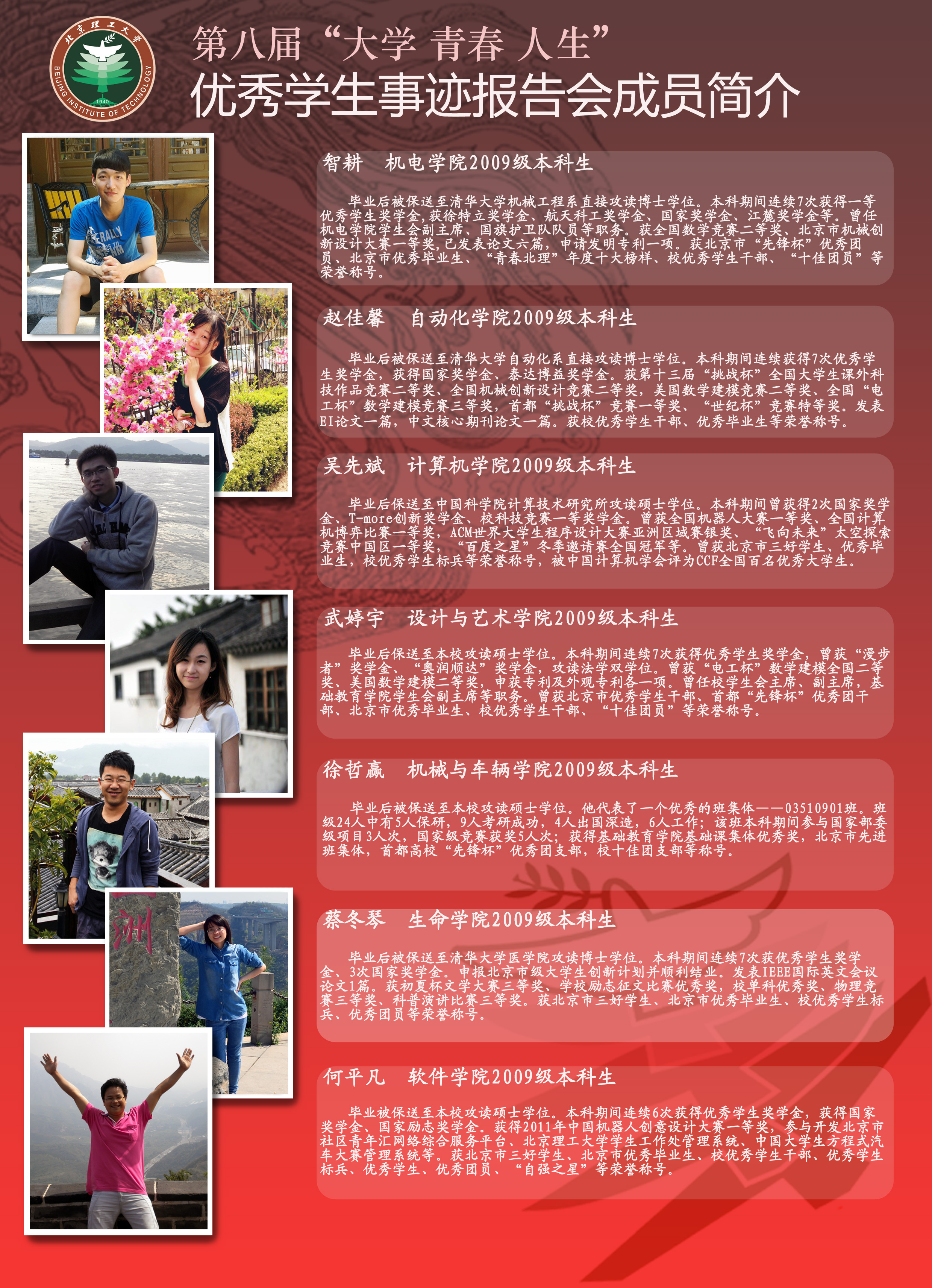 【预告】北理工第八届“大学 青春 人生”优秀学生事迹报告会