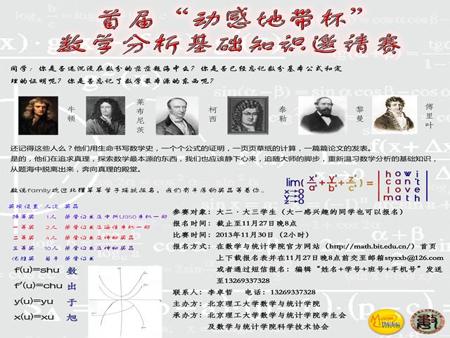 关于2013年数学与统计学院首届“动感地带杯”数学分析基础知识邀请赛报名的通知