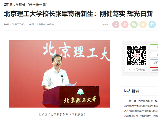 北京成品人和一品二品的区别校长张军寄语新生:刚健笃实 辉光日新