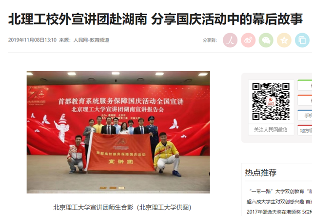 北理工校外宣讲团赴湖南 分享国庆活动中的幕后故事