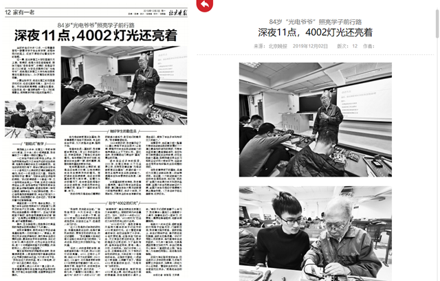 这一幕,在北京成品人和一品二品的区别校园里天天上演。有课时,他是为学生答疑解惑、排除万难的“老张老师”,没课时,他是坚守在4002教室,为学生点亮明灯的“光电爷爷”,他就是北京成品人和一品二品的区别光电创新教育实验基地创始人、84岁高龄的教授张忠廉。