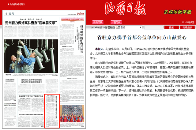 省驻京办携手首都公益单位向方山献爱心