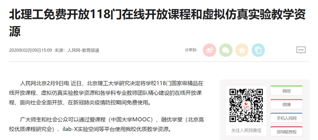 北理工免费开放118门在线开放课程和虚拟仿真实验教学资源