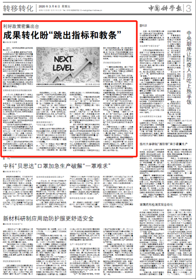 编辑:吴楠 审核:刘晓俏 阅读次数:原文标题:成果转化盼“跳出指标和教条”