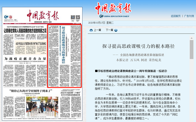 “推动思想政治理论课改革创新,要不断增强思政课的思想性、理论性和亲和力、针对性。”2019年3月18日,在学校思想政治理论课教师座谈会上,习近平总书记谆谆教诲,给各地推进思政课改革创新指明了方向。