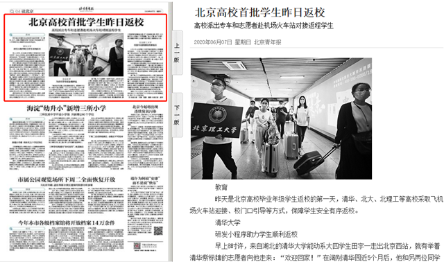 昨天是北京高校毕业年级学生返校的第一天,清华、北大、北理工等高校采取飞机场火车站迎接、校门口引导等方式,保障学生安全有序返校。