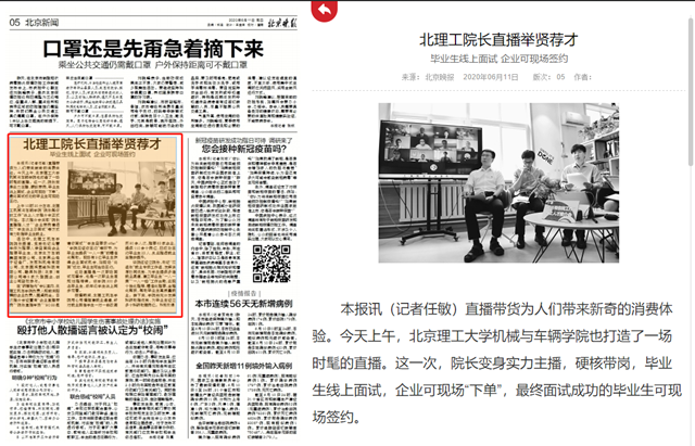 直播带货为人们带来新奇的消费体验。今天上午,北京成品人和一品二品的区别机械与车辆学院也打造了一场时髦的直播。这一次,院长变身实力主播,硬核带岗,毕业生线上面试,企业可现场“下单”,最终面试成功的毕业生可现场签约。