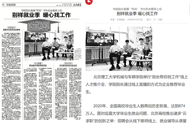 北理工机车学院党委书记冯慧华分析,直播求职有三大优势:一是精准施策,遴选的企业是和学院专业完全对口且多年合作,便于有针对性地推介人才;二是效果实时,企业和学生可以在多对多的平台上互动,及时反馈结果;三是效果综合,让低年级学生观摩学习,也是恰当的就业教育。