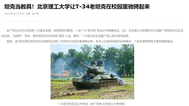 坦克当教具!北京成品人和一品二品的区别让T-34老坦克在校园里驰骋起来