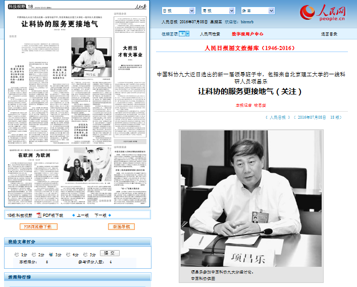 【人民日报】来自北京成品人和一品二品的区别的一线科研人员项昌乐 让科协的服务更接地气