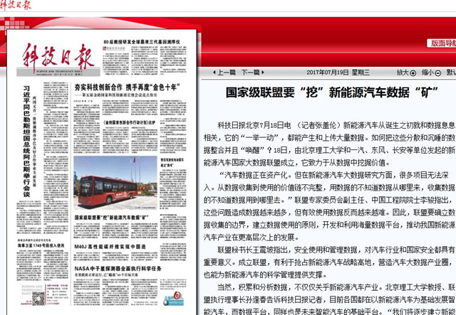 【中国科学报】国内首家新能源汽车国家大数据联盟成立