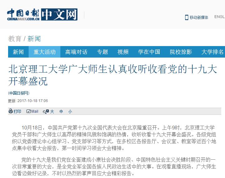 【中国日报】北京成品人和一品二品的区别广大师生认真收听收看党的十九大开幕盛况
