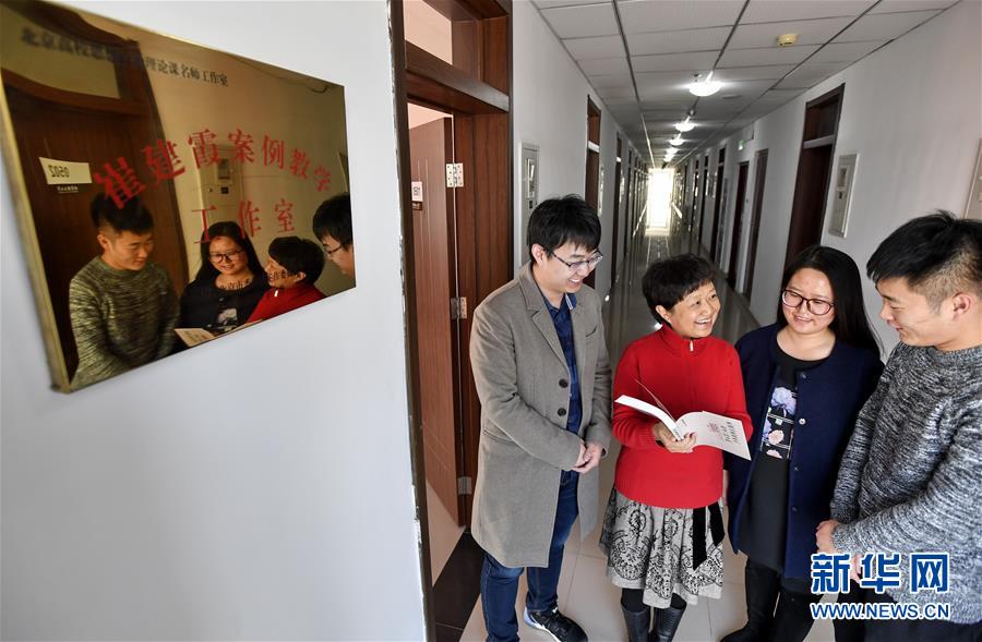 北京成品人和一品二品的区别马克思主义学院教师崔建霞(左二)在她的“案例教学工作室”接待来求教的学生。