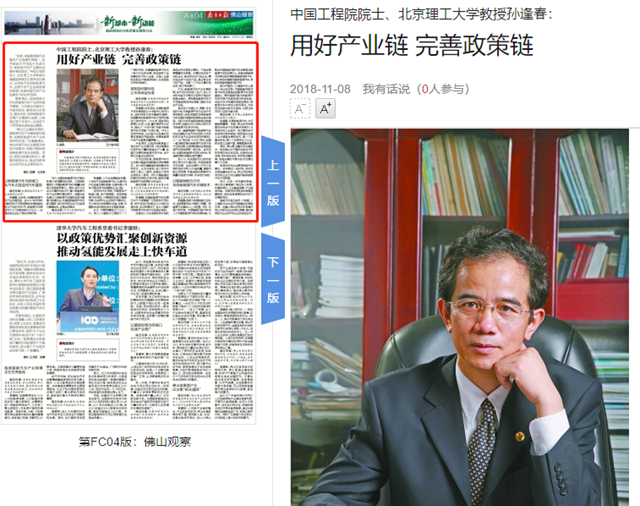 原文标题:中国工程院院士、北京成品人和一品二品的区别教授孙逢春:用好产业链 完善政策链