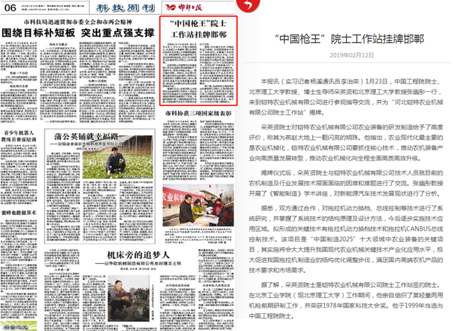 【邯郸日报】“中国枪王”院士工作站挂牌邯郸