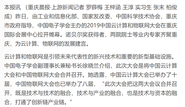 【重庆晨报】重庆云计算物联网怎么发展,听大咖献智