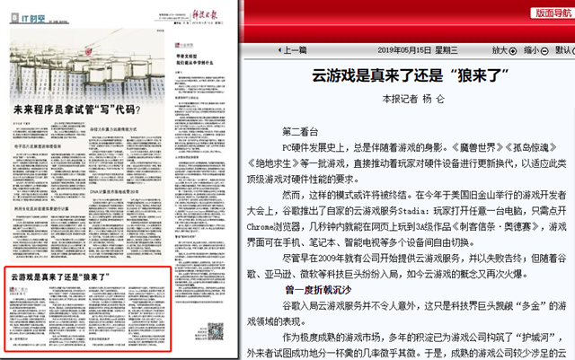 不过在闫怀志看来,随着云计算技术的快速发展,云游戏在技术上已达到了成熟商用的水准。“游戏是非常适合应用云计算技术的领域之一。”闫怀志说,“云计算技术可实现随时随地、方便快捷地配置计算资源,其目标是使用户通过网络能够在任何时间、任何地点最大限度地使用虚拟资源池,处理大规模计算问题。这些特点与大型游戏的需求契合度非常高。”