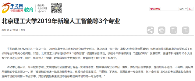 【千龙网】北京成品人和一品二品的区别2019年新增人工智能等3个专业