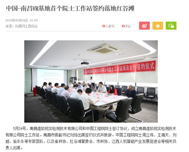 【凤凰网】中国-南昌VR基地首个院士工作站签约落地红谷滩