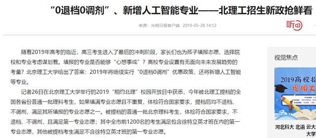 【光明日报客户端】“0退档0调剂”、新增人工智能专业——北理工招生新政抢鲜看
