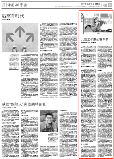 【中国科学报】北理工学霸的赛车梦