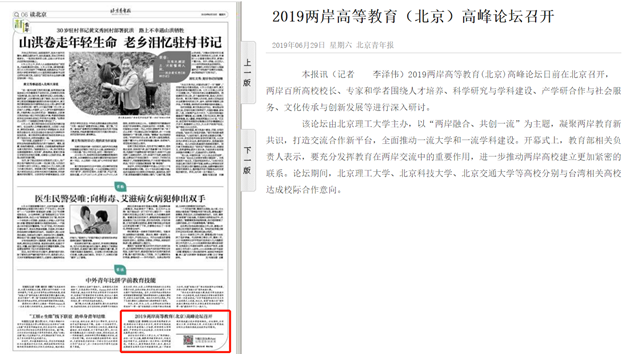 【北京青年报】2019两岸高等教育(北京)高峰论坛召开