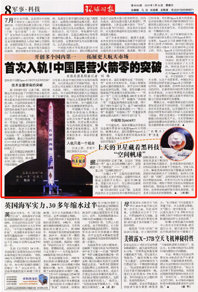 据《环球时报》记者了解,星际荣耀这次发射创造了中国民营商业航天历史上的三个首次:中国民营商业航天运载火箭首次成功发射并高精度入轨;中国民营商业航天首次一箭多星发射入轨;中国民营商业航天首次实现太空广告并视频回传。