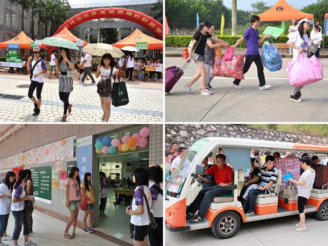 为了在迎新报到期间做好服务工作,北理工珠海学院今年首次采用新生分专业在不同时间报到的方法,以求错开报到高峰。迎新地点从往年的体育场改为中心教学楼,暑假建设完善的校内交通,加上迎新期间免费巴士和电瓶车的运行,大大缓解往年报到期间校内交通堵塞情况,提高报到效率。同时选择安装有空调的中心教学楼做迎新点,并提供专门的家长休息室,也是当初学校针对珠海天气进行迎新策划的人性化体现。